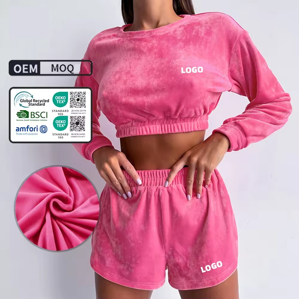 Custom logo Solid Casual Tracksuit 2 Pieces Set Sweatshirts Hoodies Joggers Shorts Women Sweat Suits Sets