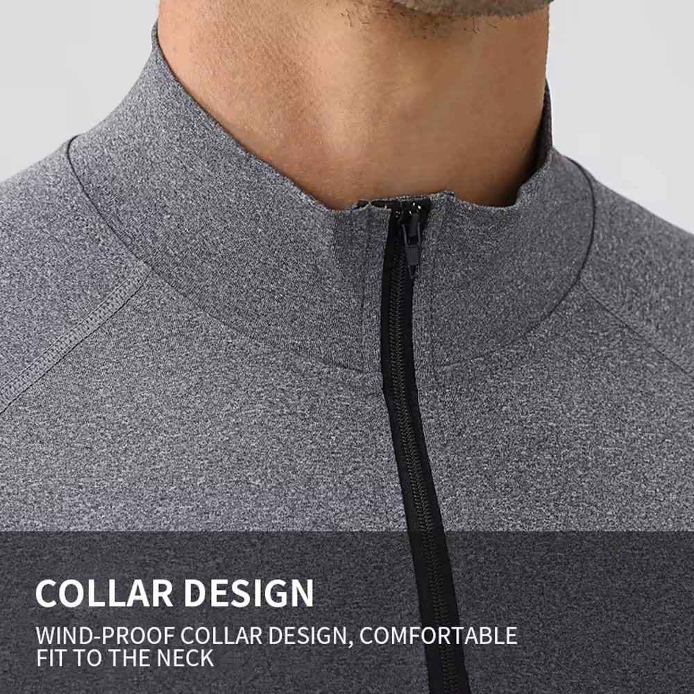 1/4 Zip Compression Mens Long Sleeve Shirt - Quick Dry Polyester Elastane Golf Pullover for Men - Custom Quarter Zip T-Shirt