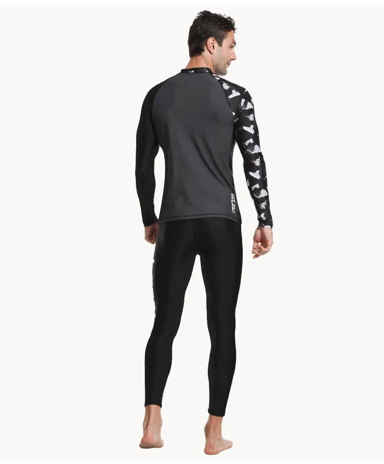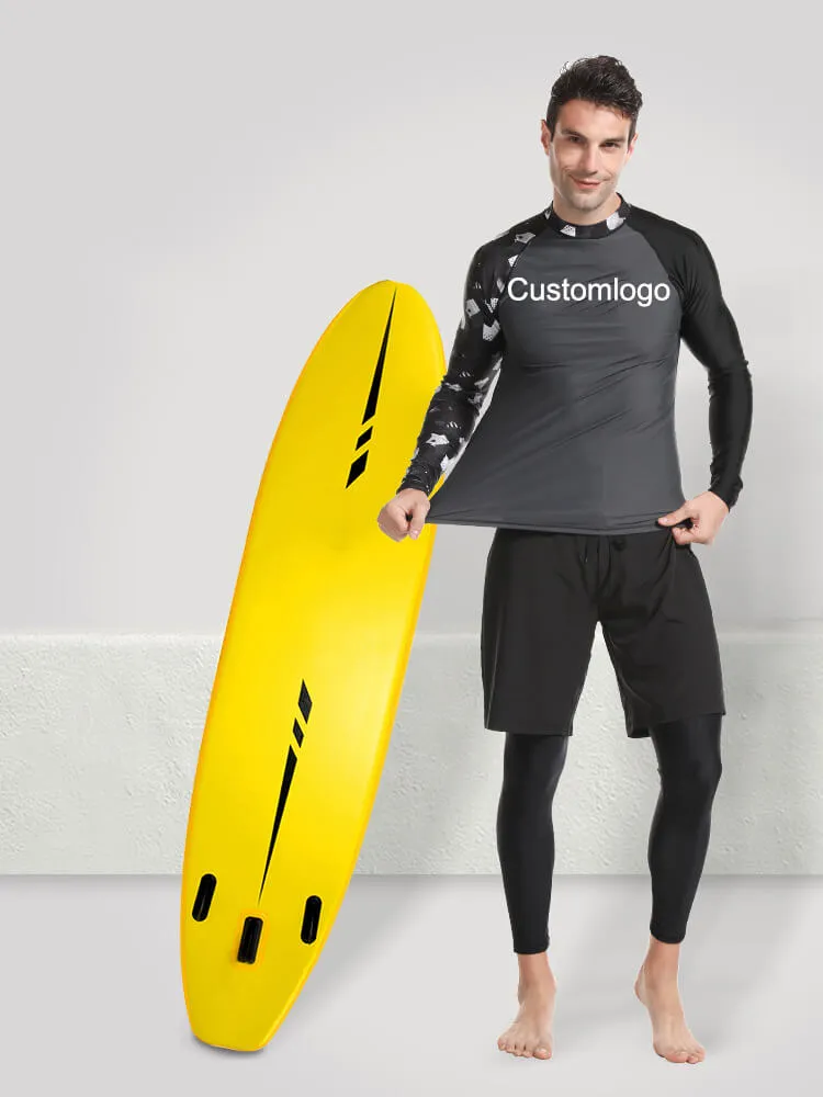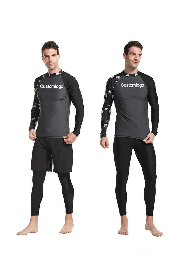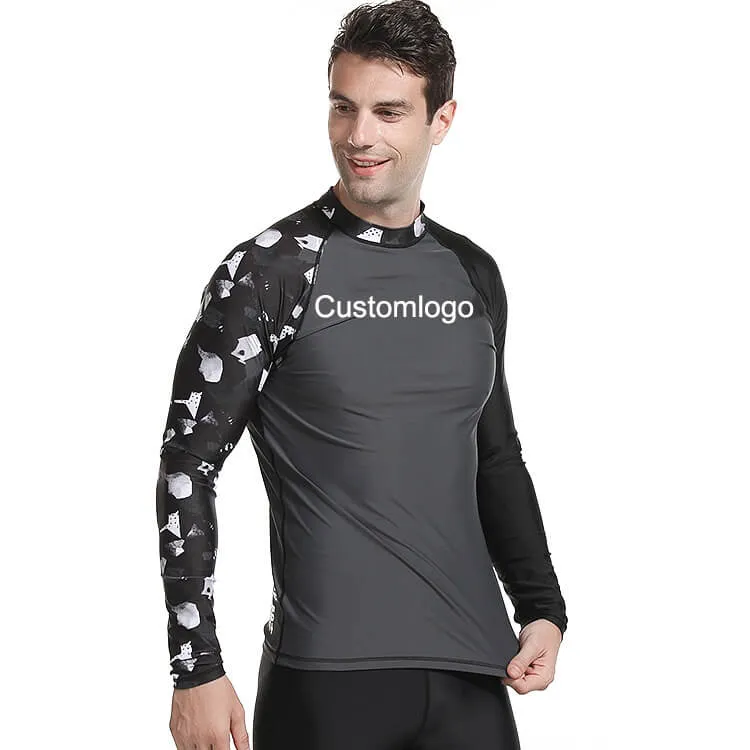 Long sleeve rash guard, different design for sleeves, place printing on the chest, UPF50+to protect your skin.