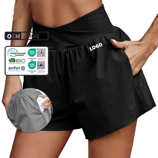 Custom Hot Selling Breathable Quick Dry Everyday Shorts Pockets 2-In-1 Jogging Gym Shorts for Women