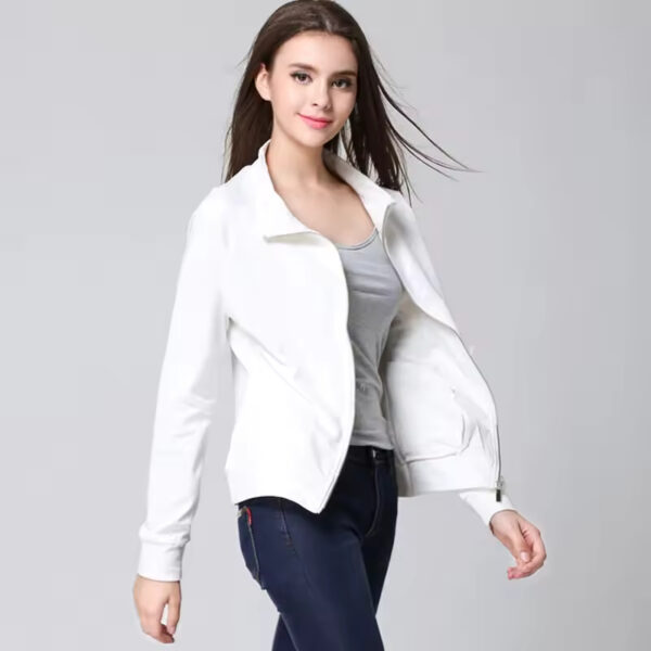 Fashion Plain White Slim Fit Women Zipper Casual Sports Jacket