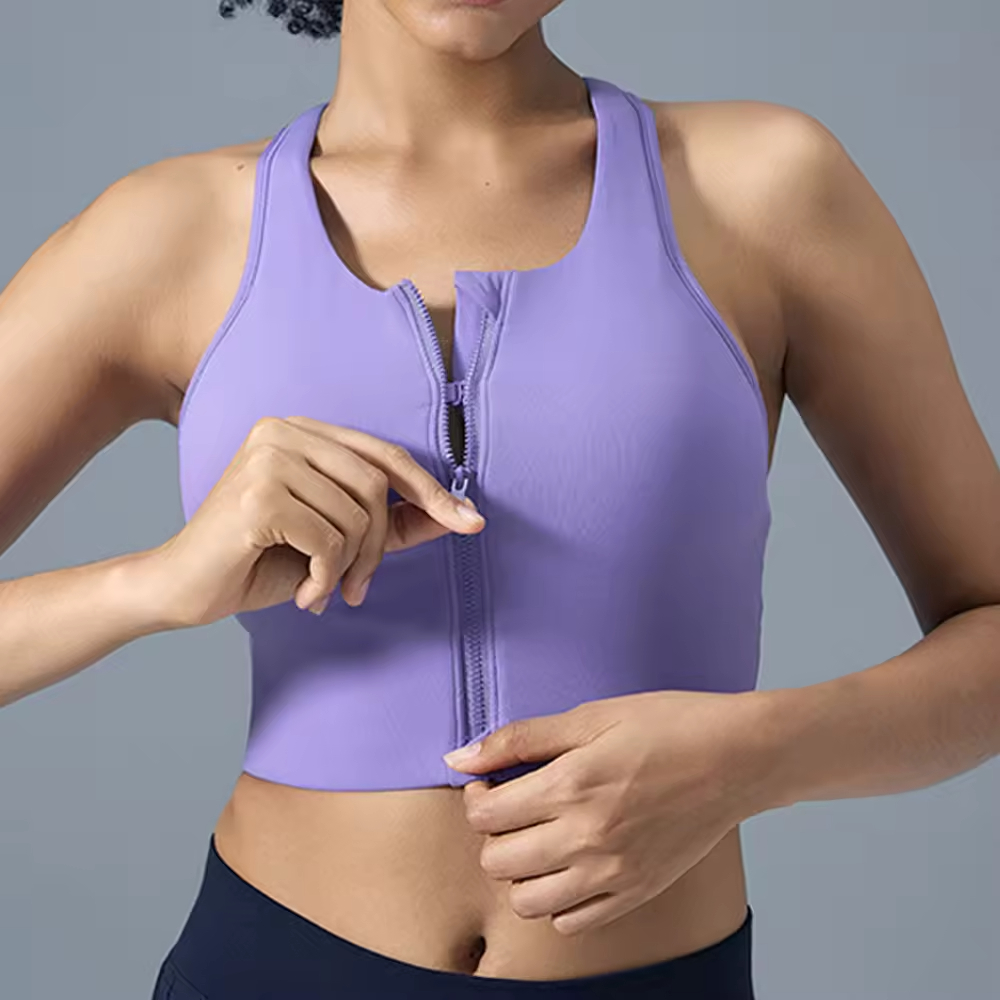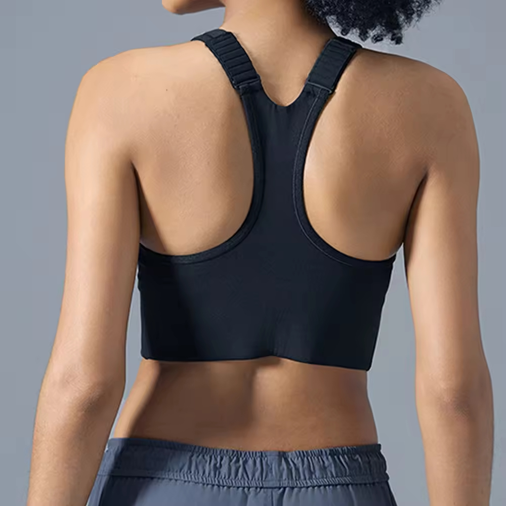 Front Anti Slip Zipper Sports Bras Workout High Impact Yoga Backless Top