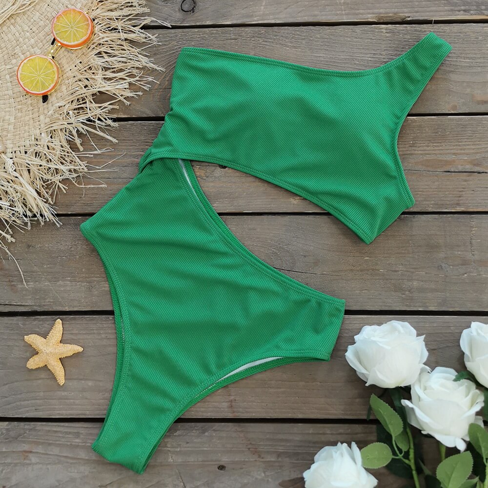 Women Drawstring Bikini One-Piece Swimsuit Ladies Swimwear