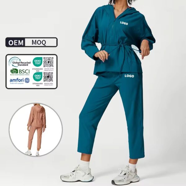 High Quality Female Tracksuit Women 2 Pieces Long Sleeve Zip Hooded Sportswear Jogger Short Pants Set