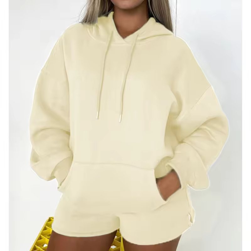 Custom logo Solid Casual Tracksuit 2 Pieces Set Sweatshirts Hoodies Joggers Shorts Women Sweat Suits Sets