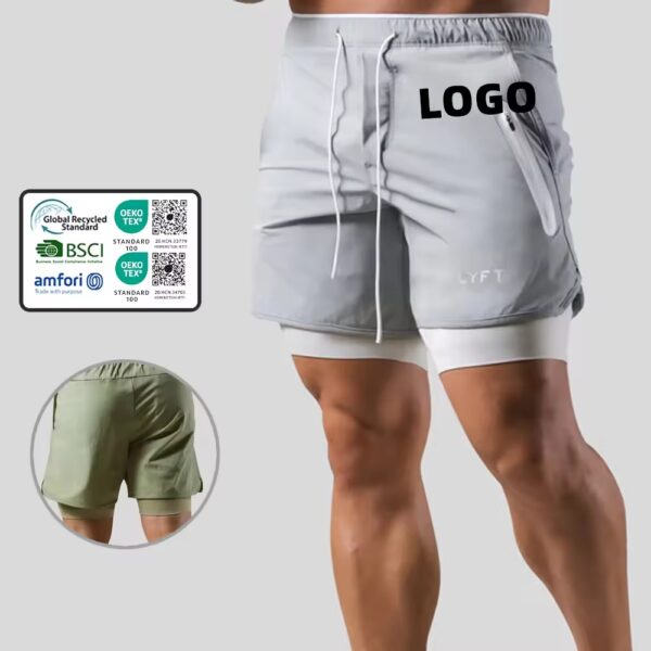 Manufacture Custom 2 in 1 Bodybuilding Shorts 2 Layers Training Gym Running Mens Shorts Pants