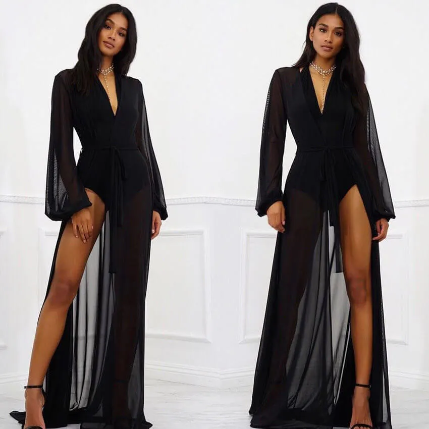 Super long cover up, long sleeve and puff sleeve, mesh fabric very soft.