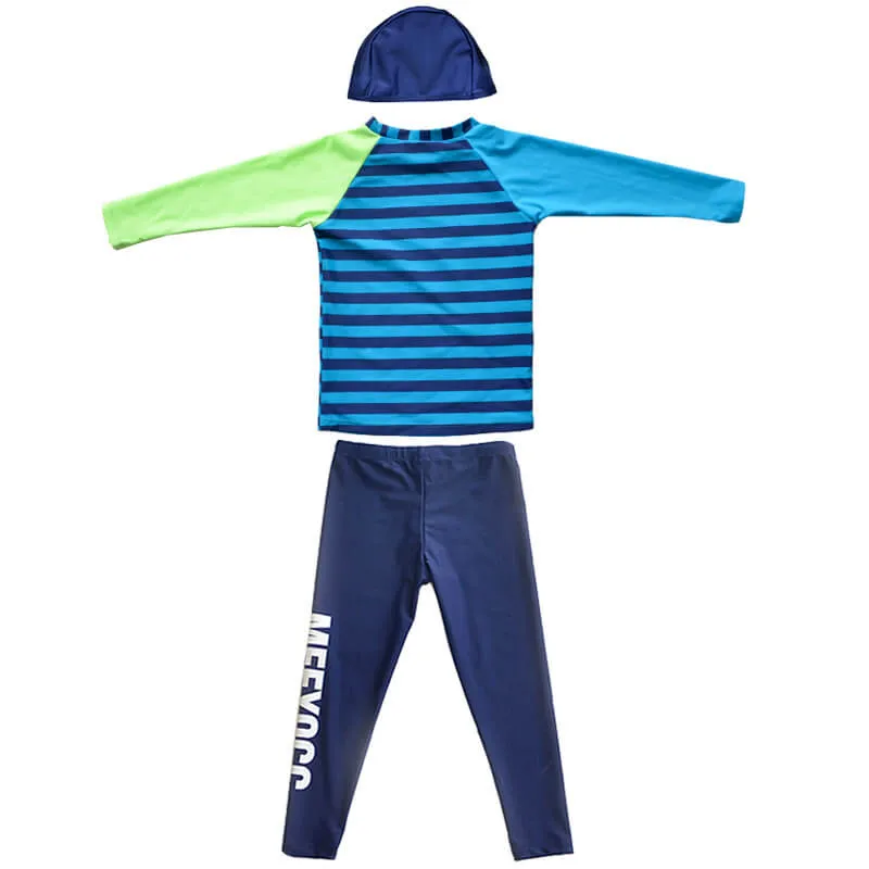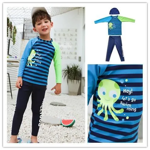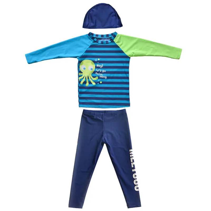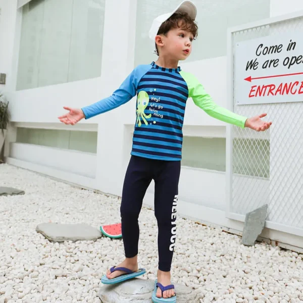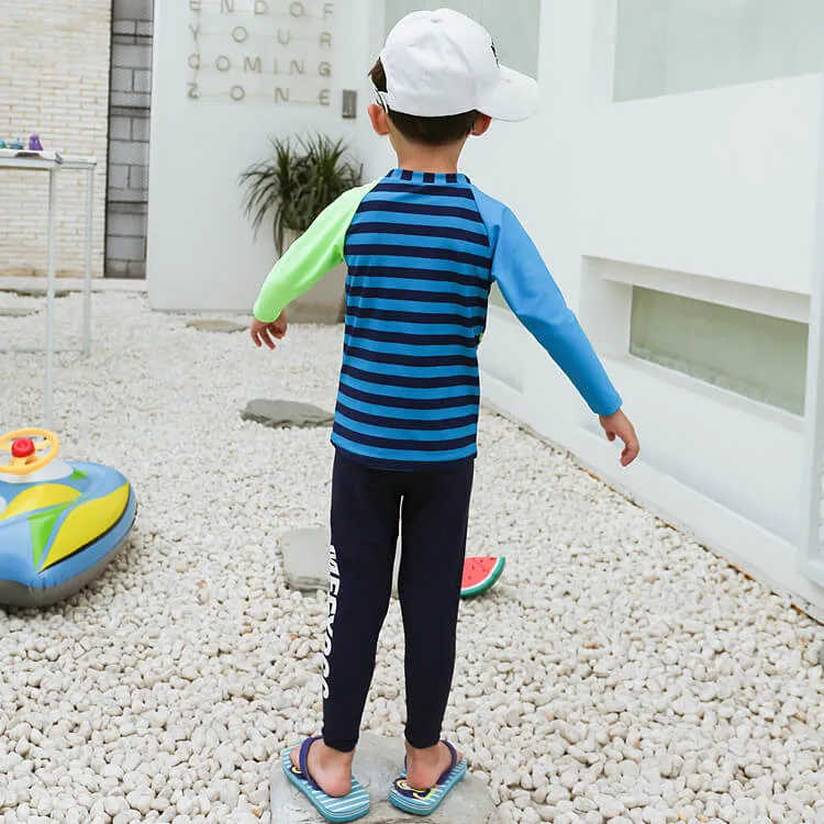 Long Rash guard and swim pant matching, contrast sleeve, allover print at front, long swim pant with placement printing.