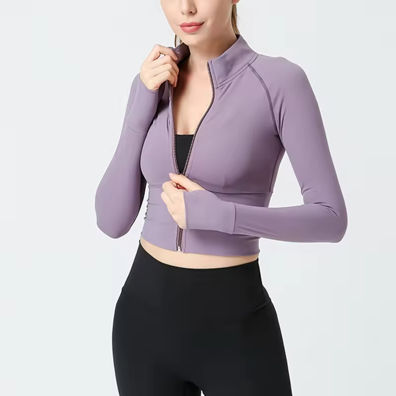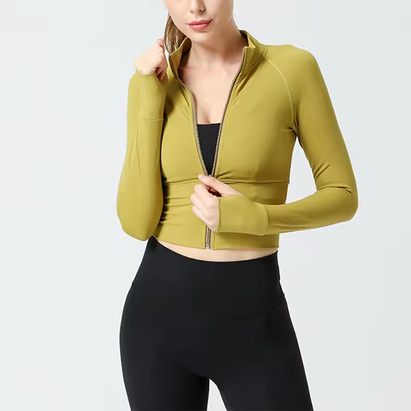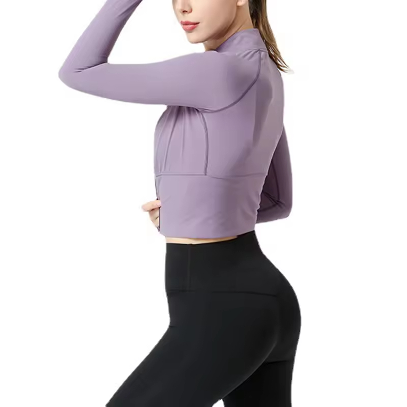 Standing Collar Sports Long Top Casual Quick Dry Plug Sleeve Half Zipper Fitness Running Yoga Clothing Jacket Women