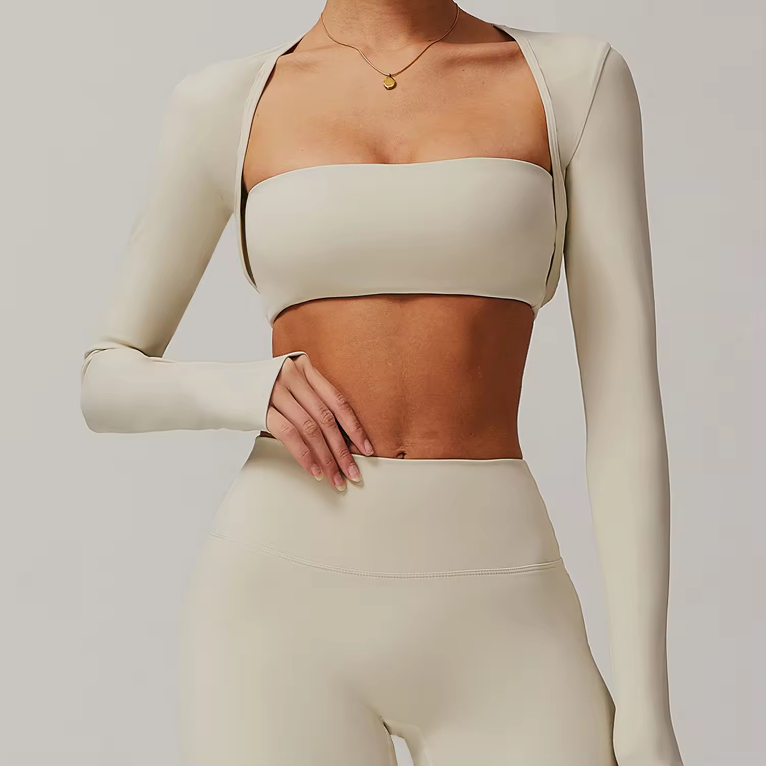 Autumn Winter Shawl Two Gym Tops Long Sleeve Chest Padded Yoga Wear